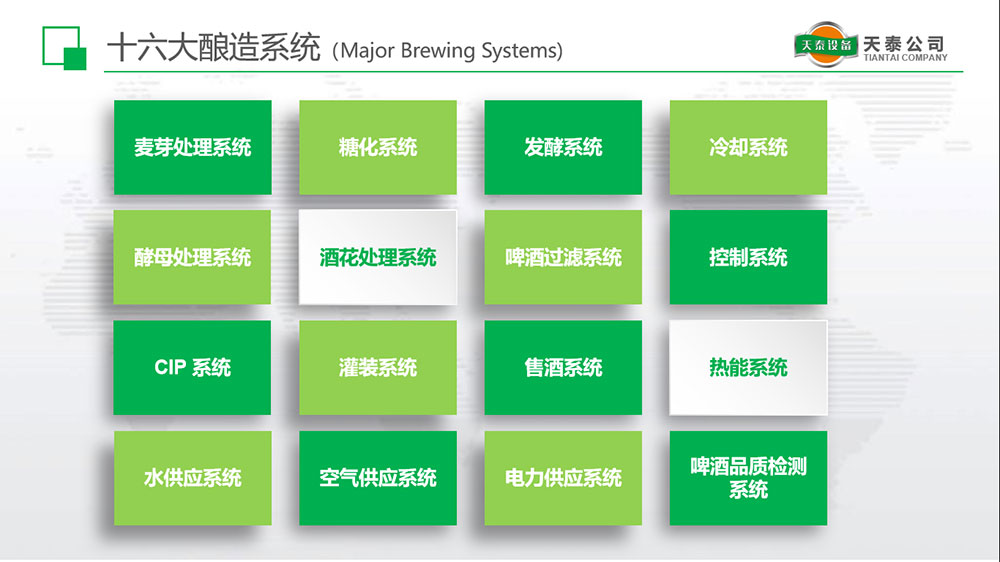 根據功能特點,我們將大型啤酒廠的設備組成,分為十六大系統。